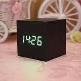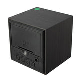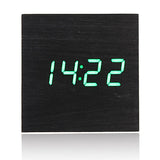 Black Wood Square Green LED Alarm Digital Desk Clock Wooden Thermometer