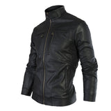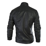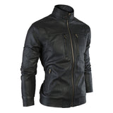 Leather Jacket Men Stand Collar Autumn New Men's leather Jacket +Locomotive style Men's Slim Fit Leather Clothing Black Brown