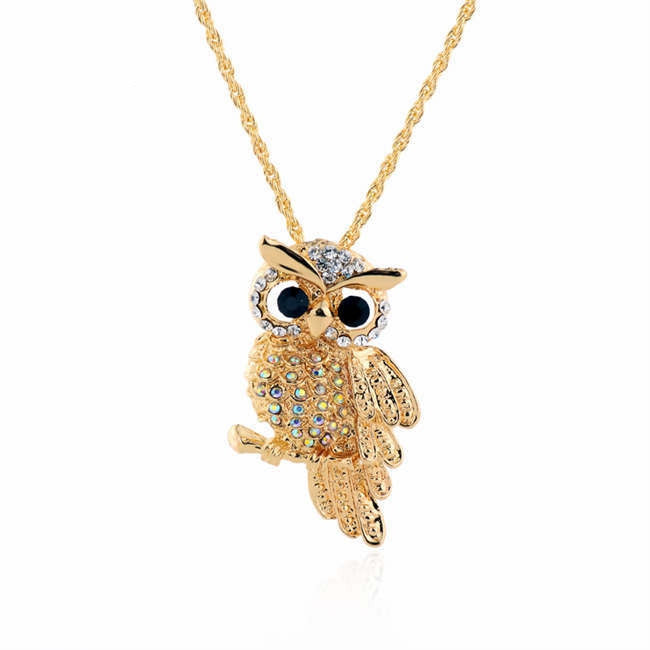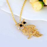 Vintage 18K Gold Rhinestone Filled Cute Owl Necklaces & Pendants For Women Long Necklace