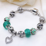 Best LOVE Gift Silver Plated Heart Charm bracelet for Women Murano Glass Beads Jewelry Original Bracelets Cuff Bracelet