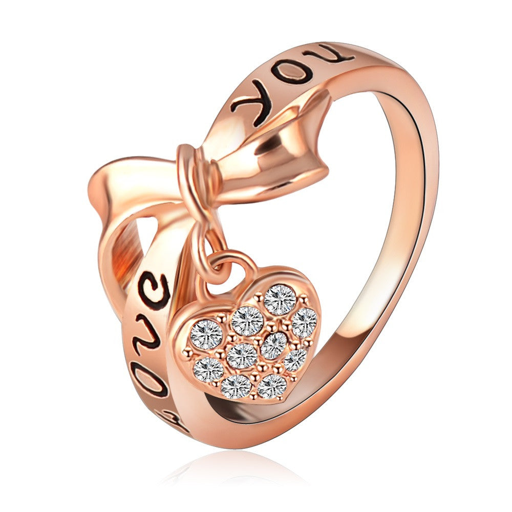 Brand Black Enamel Love You Ring Heart Bow Rose Gold Plate Austrian Crystal SWA Elements Rings Word Ring