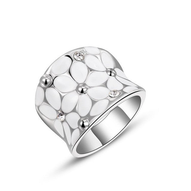 Fashion Austrian Crystal White Flower Ring White Gold Plated Women Jewelry for Chirstmas