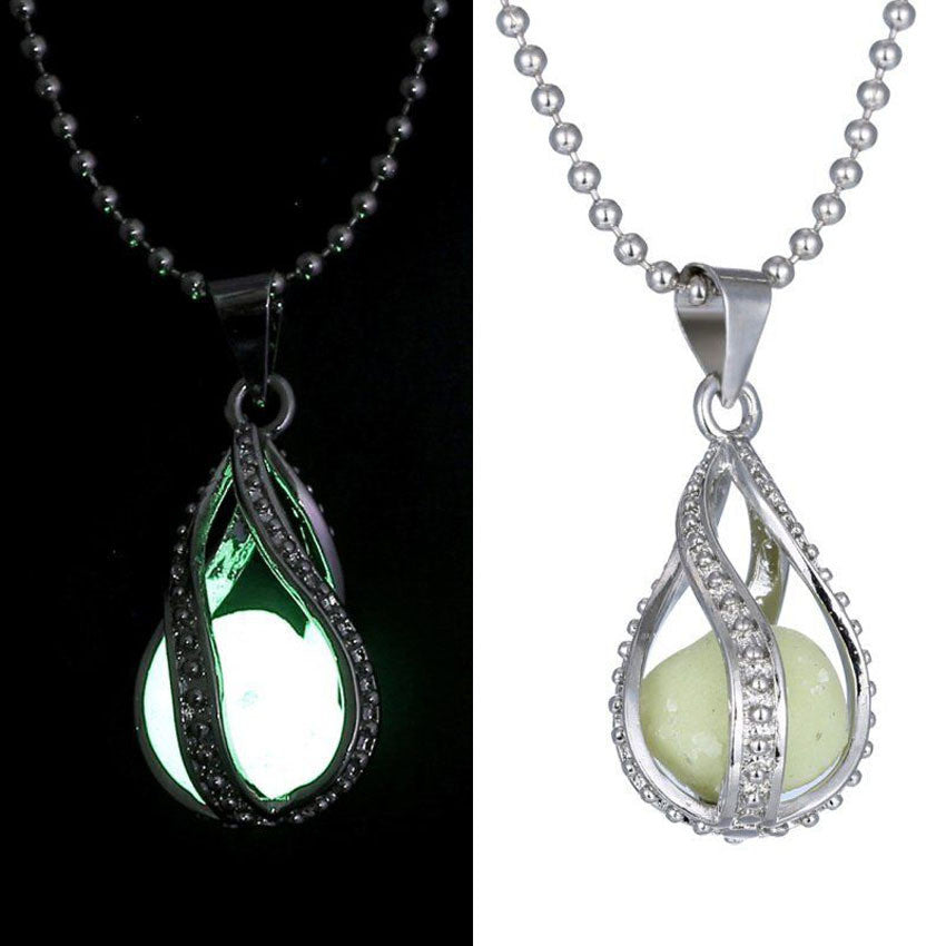 Fashion fluorite rhinsetone Women The Little Mermaid's Teardrop Glow in Dark Pendant Necklace