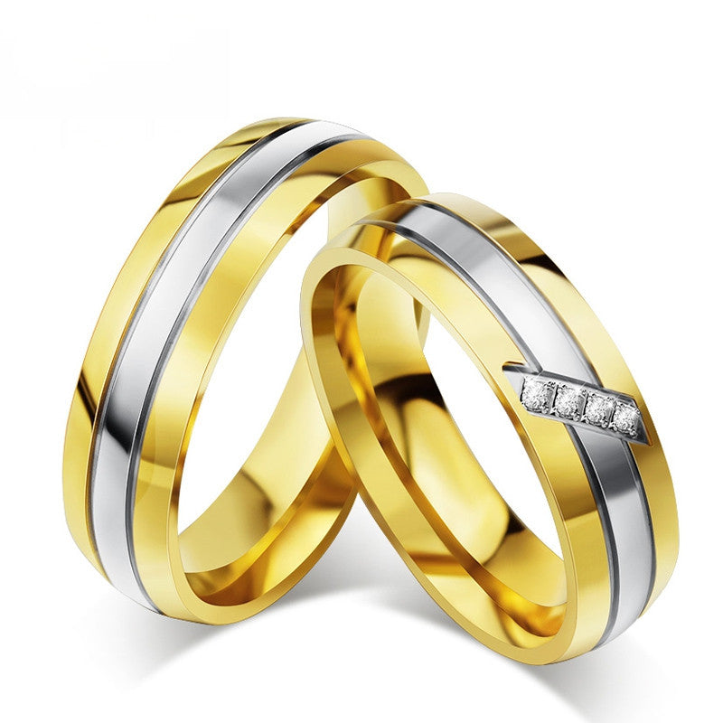 Fashion Gold Plated Couple Ring For Women Men Wedding Engagement Rings 316l Stainless Steel