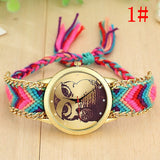Fashion Handmade Braided Owl Friendship Bracelet Rope Watch Women Quartz Wristwatches