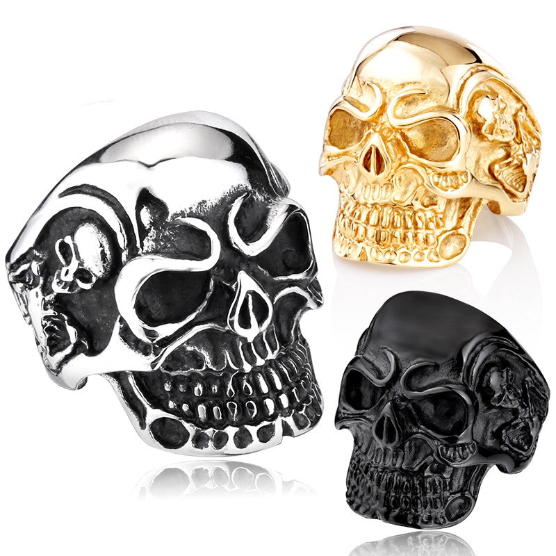 Fashion Ring Stainless Steel Rings For Man Big Tripple Skull Ring Punk Biker Jewelry
