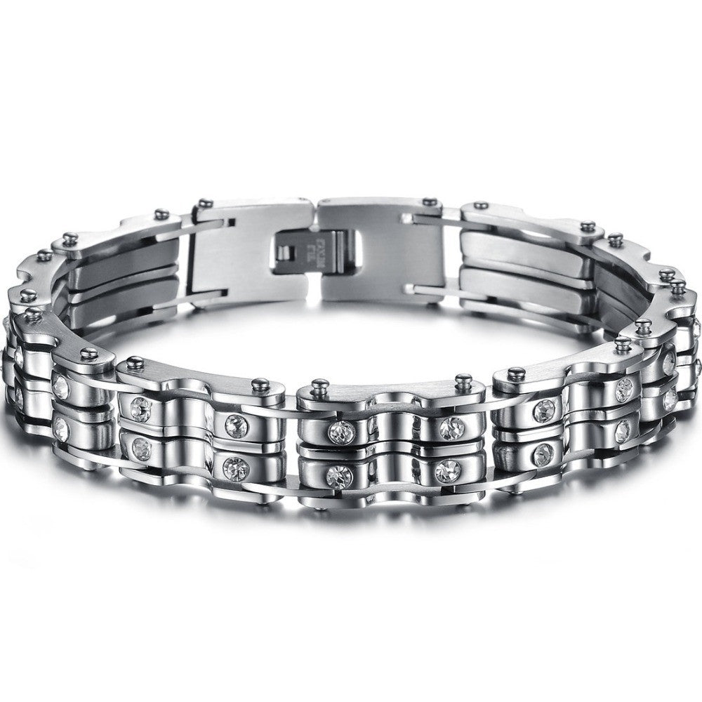 Fashion Stainless Steel Bracelet Mens Jewelry bike Chains with clear shinning crystal Titanium Bracelet