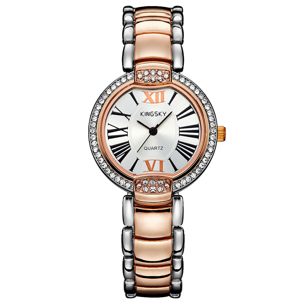 Fashion Style Women Dress Watches Luxury Brand Roman Number Rose Gold Stainless Steel Band Women Rhinestone Wristwatches Relogio