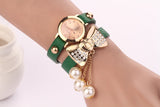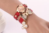 Hot New Style Fashion Women Dress Watches Leather Steel Rhinestone Quartz Reloj Mujer Butterfly Pearl Luxury Girl's bracelet watch