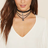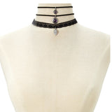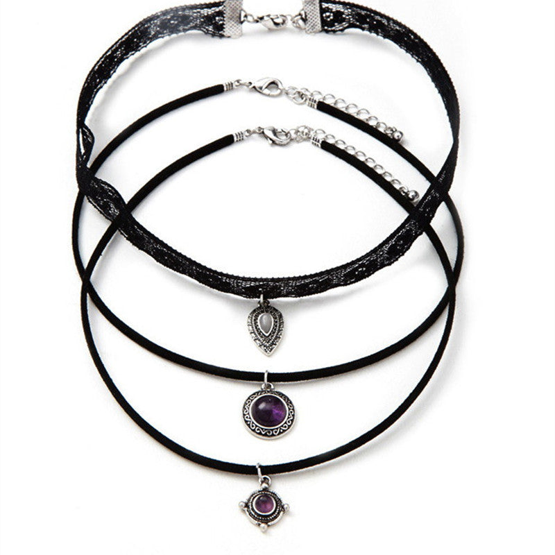 Hot-selling Sets Necklace 3Pcs Set All-match Lace Blue stone Chokers Necklaces Alloy Cute Pendants Necklaces