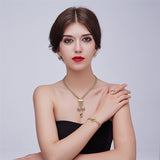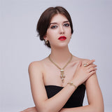 Jewelry Set For Women Gold Plated Beads Collar Necklace Earrings Bracelet Fine Rings Sets Party Costume Latest Fashion Trendy