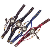 Leather strap leaf casual women vintage watch stainless steel analog round dial bracelet wristwatch quartz watch