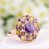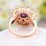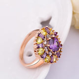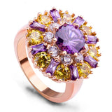 Luxury 18K Gold Plated Finger Rings with Purple and Champagne Zircon for Women Wedding