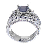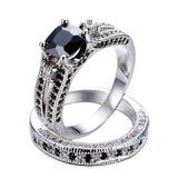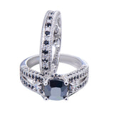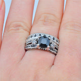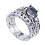 Men's Gorgeous Black Crystal Ring Set Promise Engagement Rings For Women Fashion 10KT White Gold Filled Jewelry