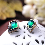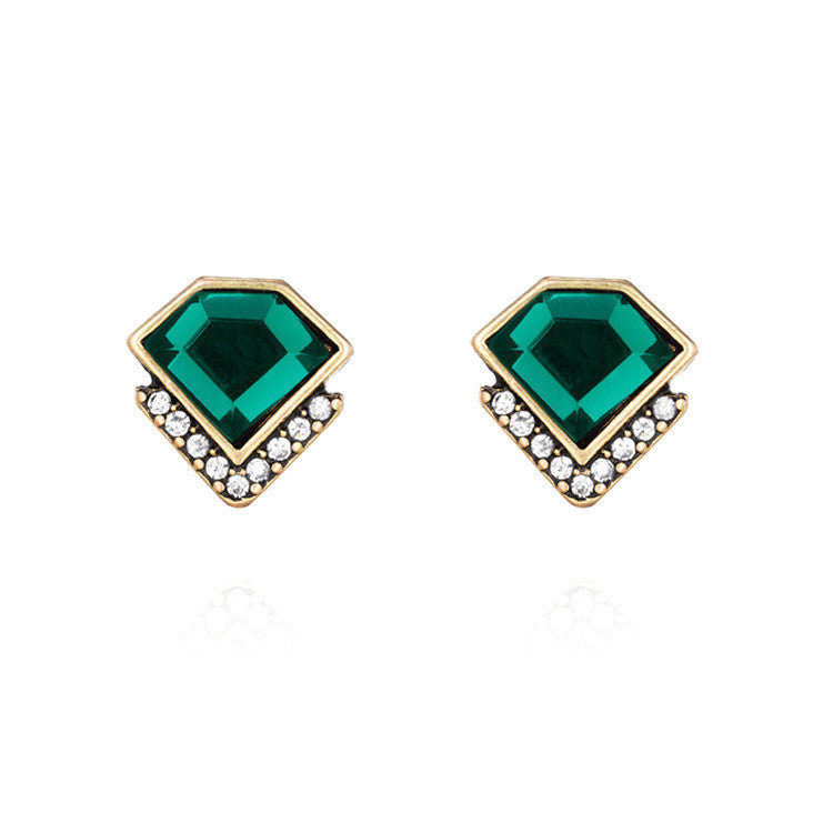 Ms Fashion Classic Emerald Geometric Crystal Stud Earrings