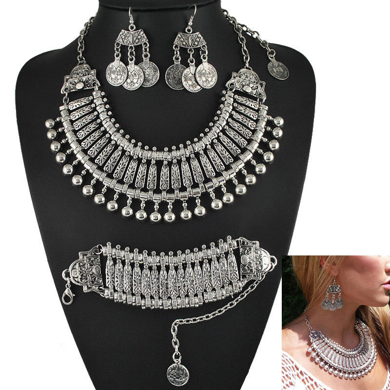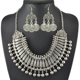 New Antique Silver Bohemian Style Gypsy Love Affair Metal Carving Flower Ball Long Pendant Statement Necklaces Boho Jewelry