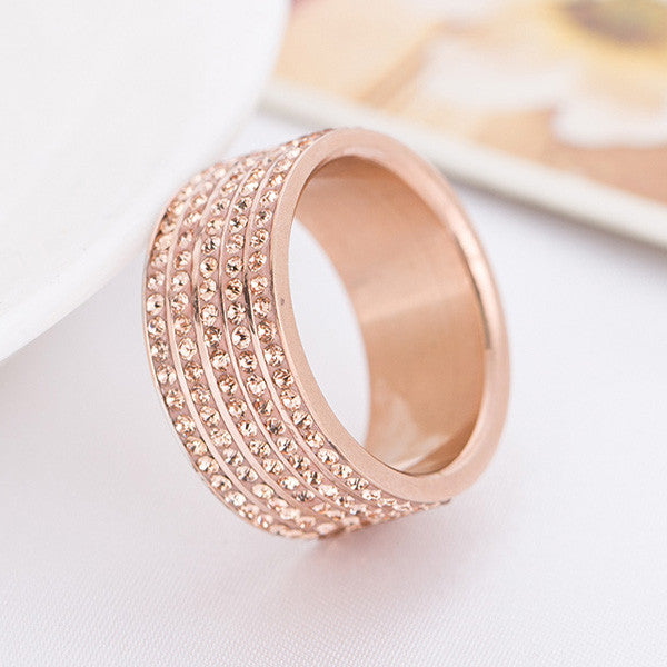 Rose Gold Plated Stainless Steel Jewelry Crystal Wedding Rings for women