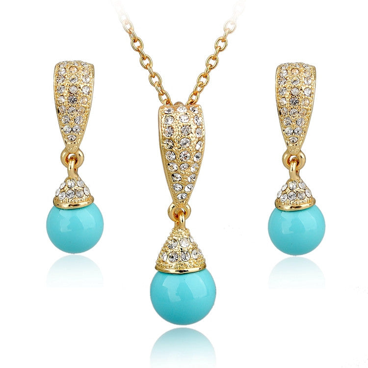 Simulated Pearl Jewelry Set For Women Gold Plated Jewellery Set Fashion Bridal Necklace Earrings Set Wedding