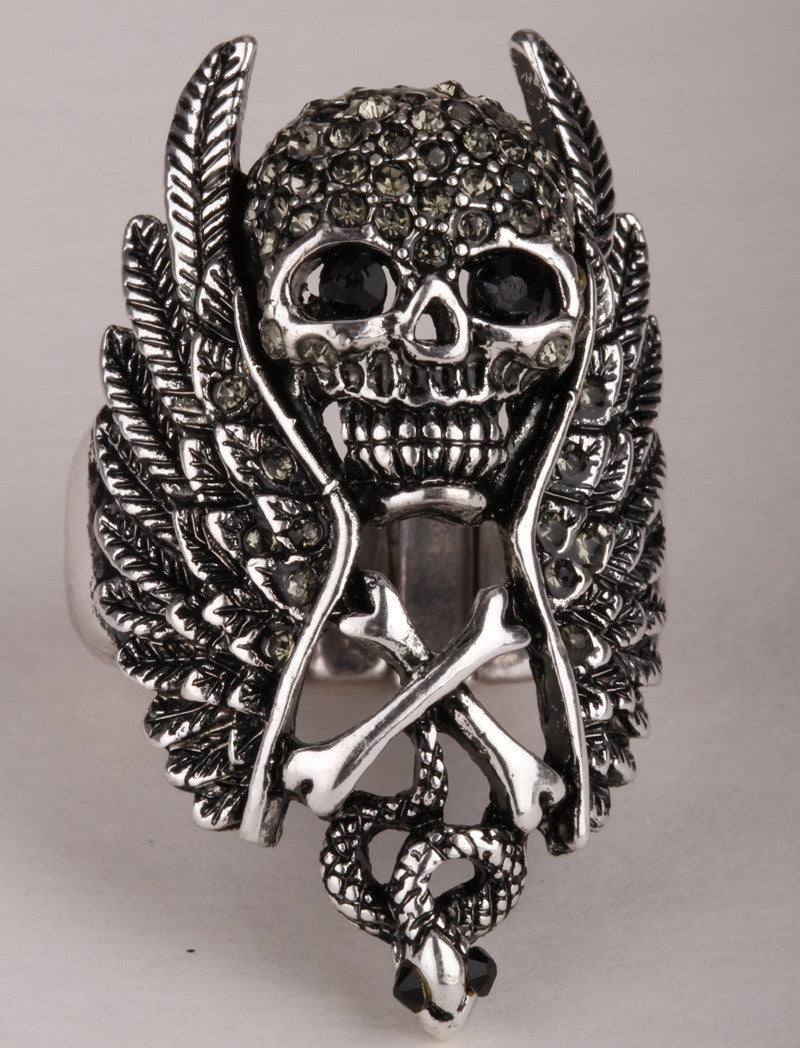 Skull wings cross snake stretch ring for women gothic punk biker jewelry