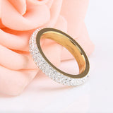 Three row clear crystal 18K Gold Stainless steel Wedding Rings for women fashion jewelry
