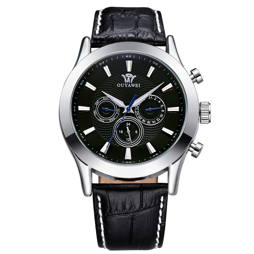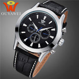 Top Mechanical Wrist Watch OUYAWEI Brand Men's Favorite Watches Leather Strap Analog Display