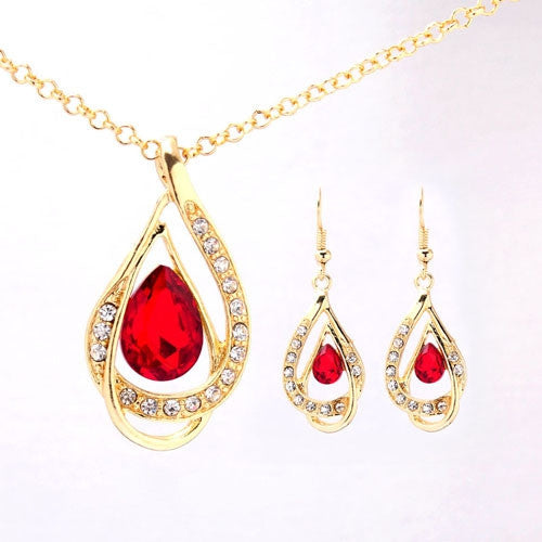 Wedding Jewelry 18k Yellow Gold Plated Sapphire Austrian Crystal Necklace+Earrings Jewelry Sets