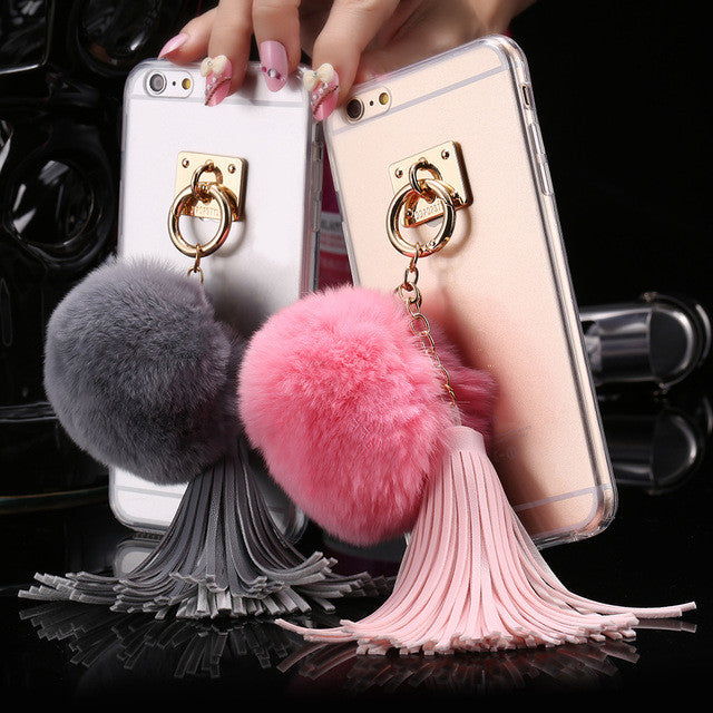 Rabbit Fur Ball Tassels Metal Ring Cases