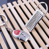 Mouse and Keyboard Shaped Metal Keychain, 1 Pair