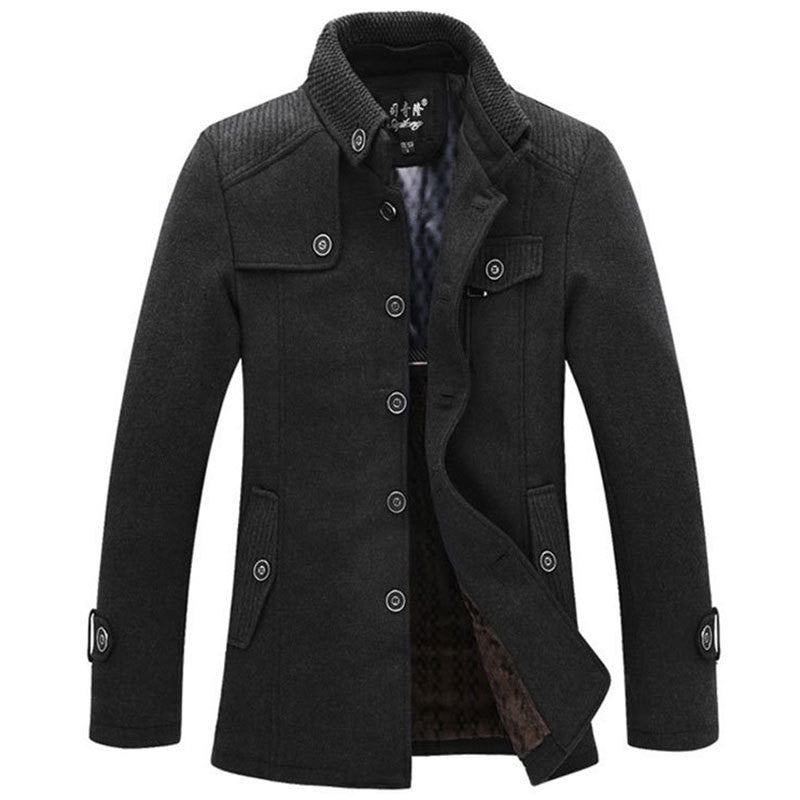 Casual long section of the stand-up collar men's windbreaker jacket thickened woolen coat