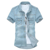 Hot Sale Men's Fashion Solid Short-sleeved Shirt Male Casual Comforatble Korean Style Turn-down Collar Denim Short