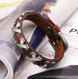 Cool 100% Genuine Leather Thick Male Bracelet Metal Cross Rivets Studded Cuff Bangle Single Buckle Belt Bracelet pulseras hombre