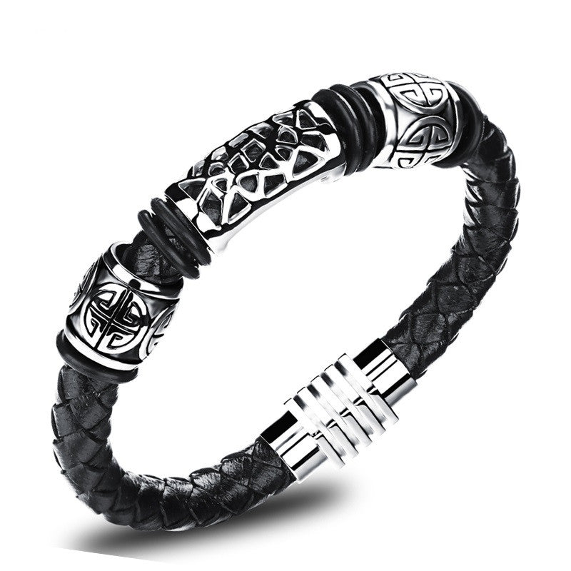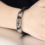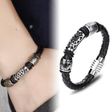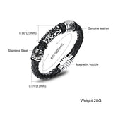 Men's Punk Jewelry Black Leather Rope Bracelets Stainless Steel Magnet Buckle Wristbands Man Vintage Bangles