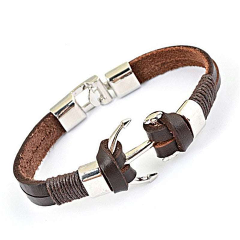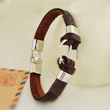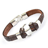 New Arrival Pirate Style Alloy Stainless Steel Anchor Bracelet For Men Genuine Cow Leather Bracelet Jewelry Best Friend Gift
