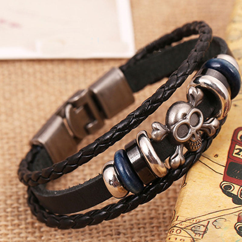 Pulseras Bracelets Man Jewelry Braided Skull Leather Bracelets