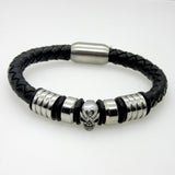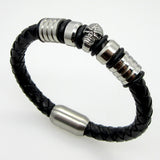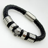 Punk Men Jewelry Pirate Style Silver Genuine Leather Skull Bracelets Magnet Wholesale Cuff Braided Wrap Black