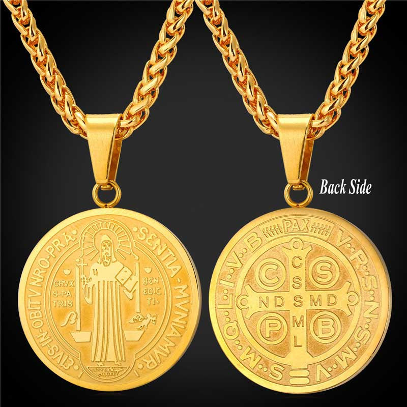 Saint Benedict Medal Pendant Necklace Charms Jewelry Gift Round Oval Stainless Steel/Gold Plated Chain Men/Women