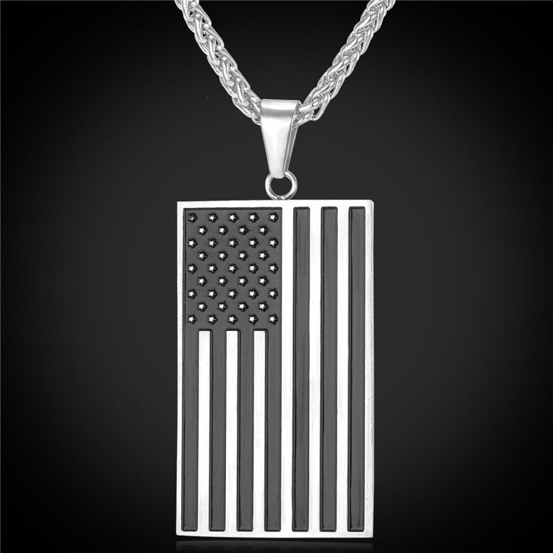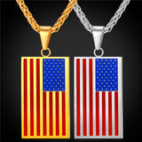 US National Flag Pendant Necklace American Fashion Jewelry Stainless Steel/Gold Plated Patriot Necklace For Men Chain