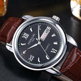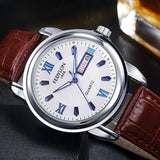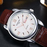 New Luxury Mens Watches Super Soft Leather Clock Men Date Day Calendar Waterproof Quartz Wrist Watches For Men