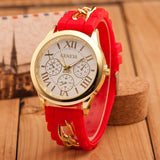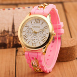 New style Geneva Silicone Band Gold Alloy Chain Women casual Watch men Quartz Wristwatch ladies women Jelly watch
