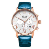 Orginal MEGIR Chronograph 6 Hands 24 Hours Function Men Top Luxury Brand Watch Genuine Leather Men Business Watch Casual Watch