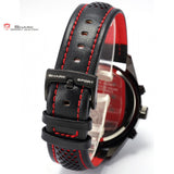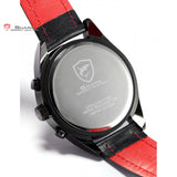 SHARK Sport Watch Mens 6 Hands Reloj Hombre Date Day Steel Case Leather Band Analog Quartz Movement Waterproof Watches