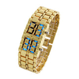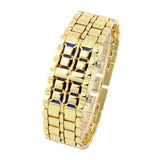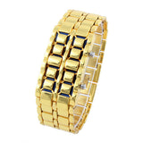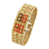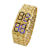 Unisex Digital Casual Watches Men and Women's Watch Blue & Red LED Digital Lava Style Gold Steel Band