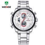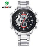 WEIDE Mens Watches Top Brand Luxury Fashion Quartz Analog Digital LCD Display Stainless Steel Multifunction Dive Casual Watch
