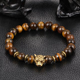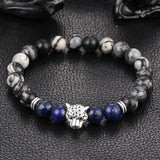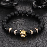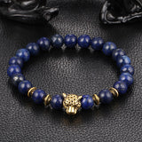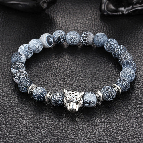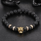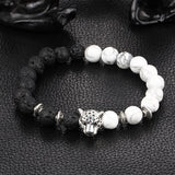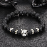 Antique Silver Plated Buddha Leopard head Bracelet Lava Natural Stone Beaded Bracelets For Men Women Pulseras Hombre