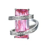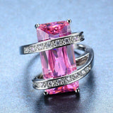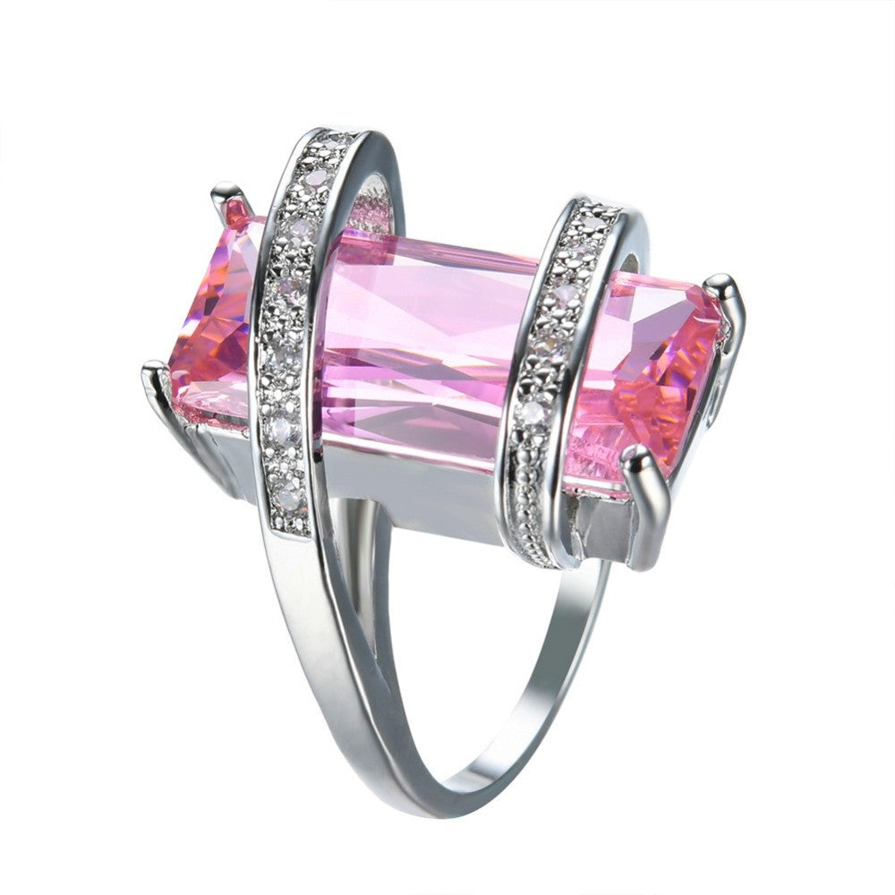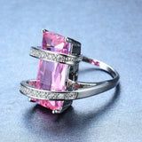 Big Geometric Female Ring Cute Princess Cut Pink Ring New Fashion White Gold Filled Jewelry Promise Engagement Ring
