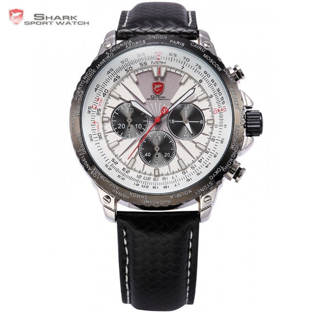 Blacktip Shark Sport Watch Chronograph 24 Hours Display Index White Dial 3 ATM Water Resistant Men Fashion Quartz Watches