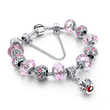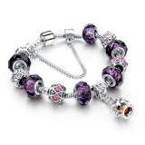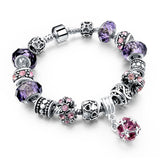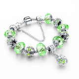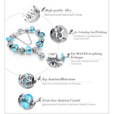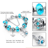 Blue Crystal Charm Bracelets & Bangles for Women With Murano Beads Bracelet Femme Love 925 Silver Sapphire Jewelry