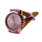 • A classic look, this fashion geneva roman numerals analog quartz wrist watch is specially designed with metal case and faux leather band