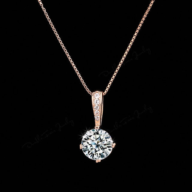 Double Fair OL AAA+CZ Diamond Chain Necklaces & Pendants Rose Gold Plated Fashion Crystal Party/Wedding Jewelry For Women