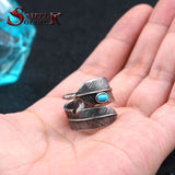 Steel soldier stainless steel feather with stone opening ring popular jewelry